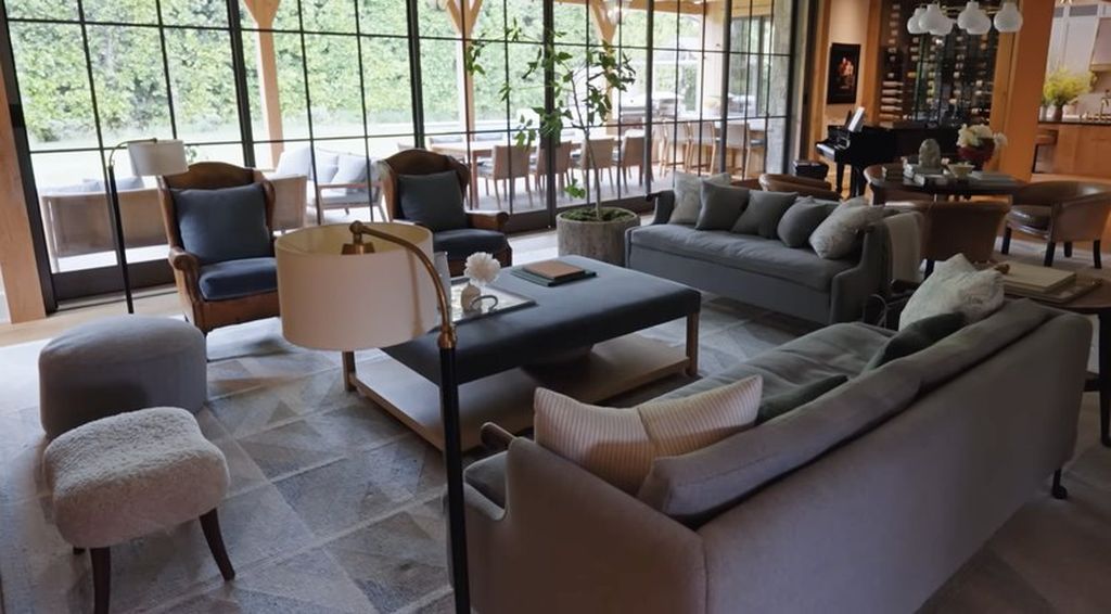 Spanning approximately 10,000 square feet, the farmhouse exudes warmth and sophistication. Natural materials like reclaimed wood beams, wide-plank floors, and stone accents are complemented by high ceilings and large windows, allowing for an abundance of natural light. The open-concept layout fosters a sense of connectivity, making it ideal for both family living and entertaining