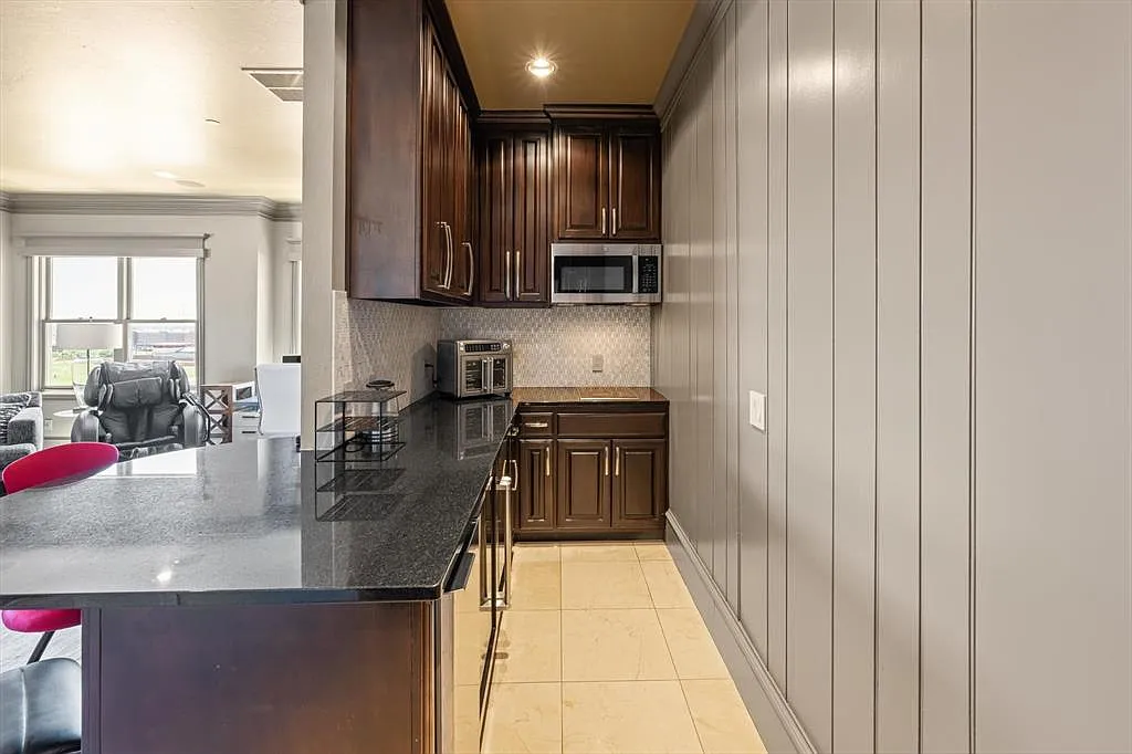 The secondary kitchen, discreetly positioned within the upper-level entertainment zone, adds another layer of versatility. Whether used for hosting, multigenerational living, or simply enhancing convenience, this feature reinforces the adaptability that defines the Kevin Durant former OKC townhouse for sale.
