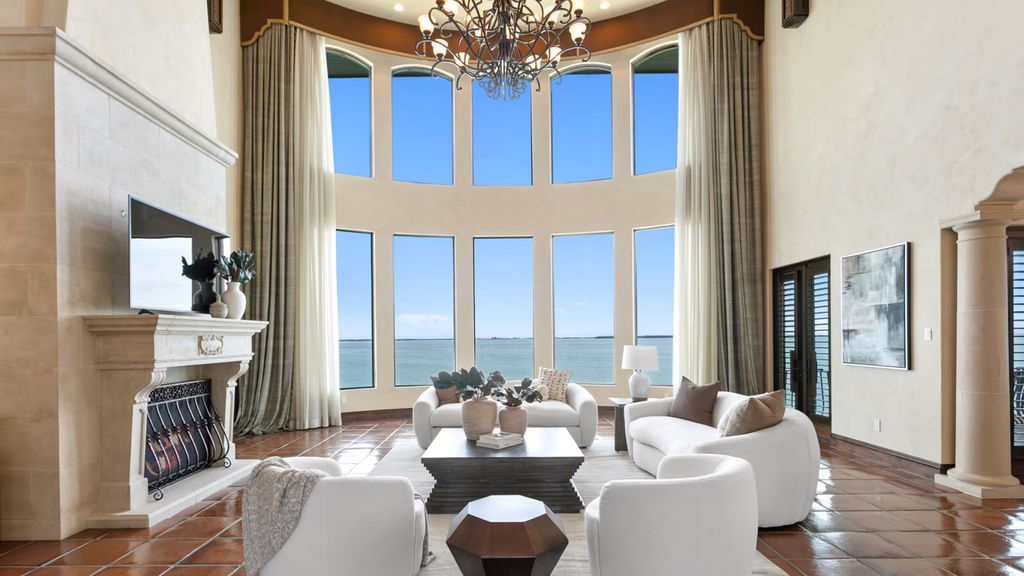 Spanning roughly 7,825 square feet across three levels, the Magic Mike mansion Tampa Bay is designed to maximize both space and scenery. Upon entry, a dramatic double-height great room sets the tone, with soaring ceilings and expansive sightlines that draw the eye toward the shimmering bay beyond.