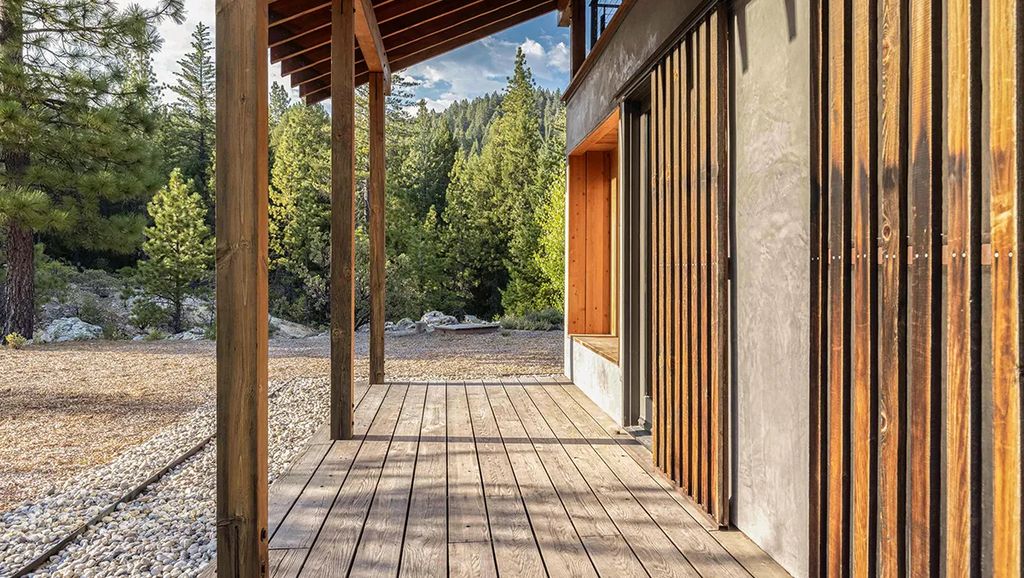 Beyond the structure itself, the property’s 60 acres carry a deep sense of place. Once the site of the historic 19th-century Sailor Flat gold mine, the grounds still hold remnants of wagon paths and mining routes now repurposed as walking trails. Seasonal streams weave through the landscape, further enhancing the property’s sense of wilderness immersion.