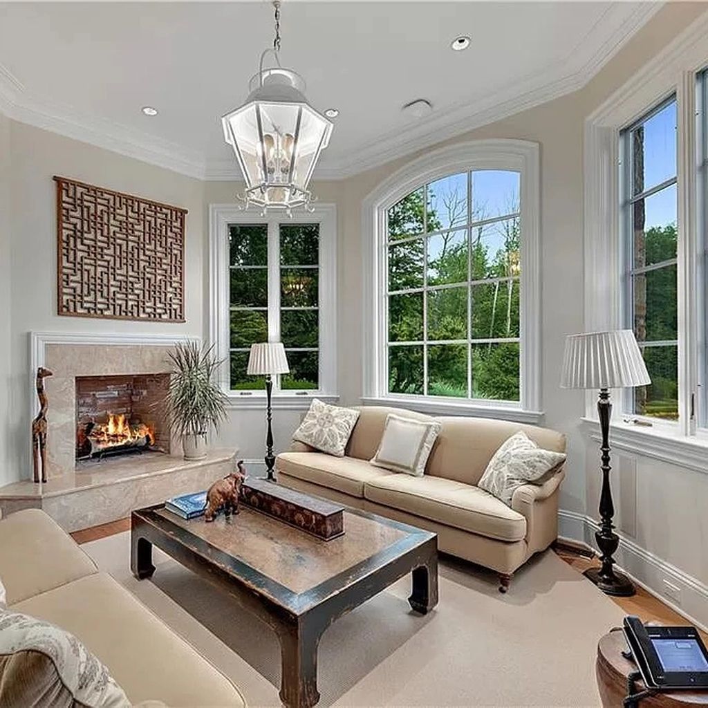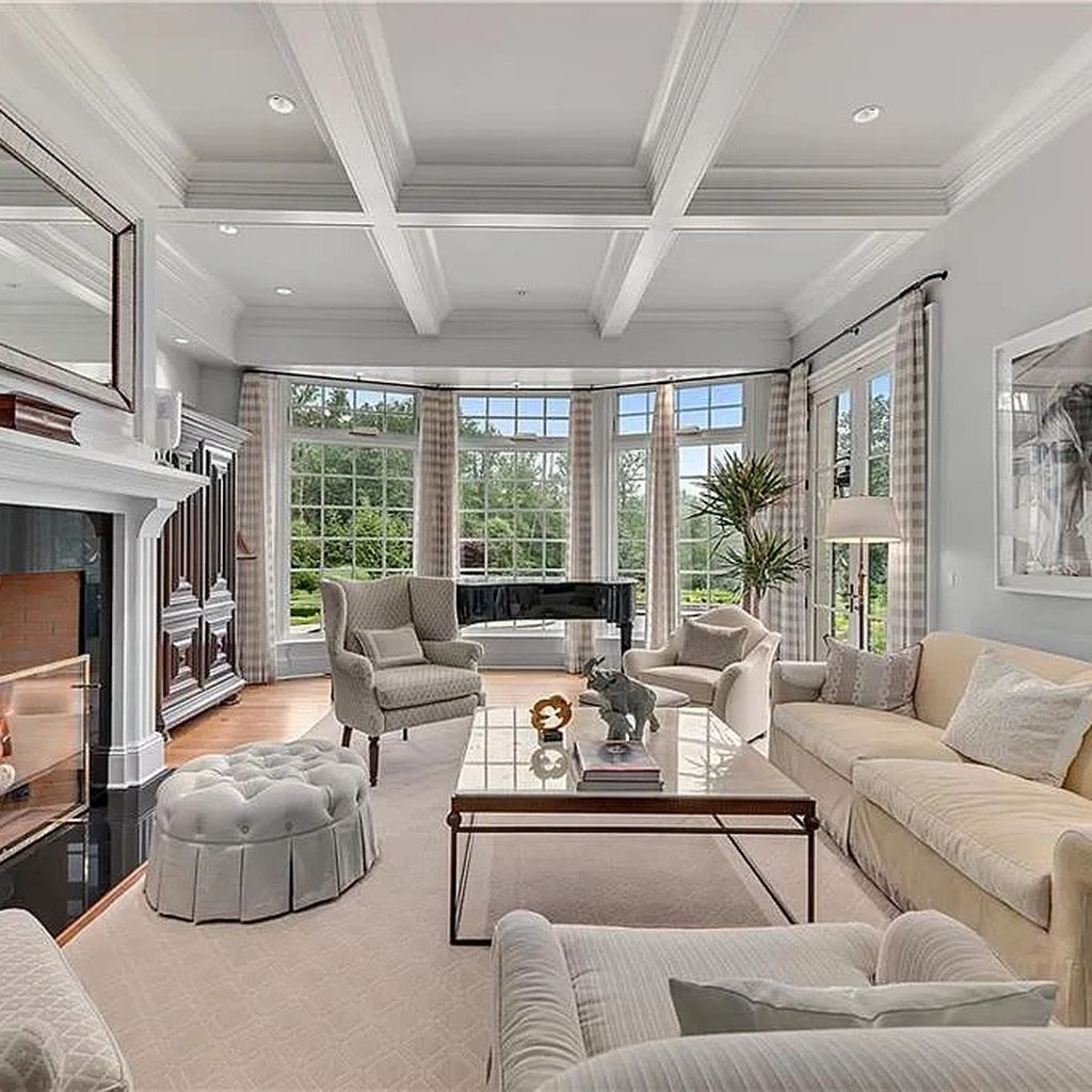 Step inside and you’re greeted by a formal living room that radiates warmth and refinement. High ceilings and oversized windows invite natural light to pour across polished wood floors, while custom molding and architectural detailing add to the sense of timeless luxury. A statement fireplace anchors the room, providing a cozy focal point during New York’s colder months.