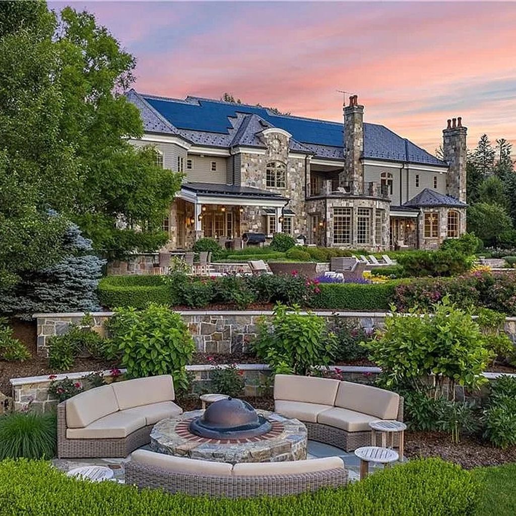 Beyond the pool, manicured lawns, sculpted hedges, and a fountain courtyard echo the estate’s commitment to symmetry and grandeur. A stone terrace with seating areas allows for seamless indoor-outdoor living, ideal for elegant gatherings or quiet evenings under the stars.