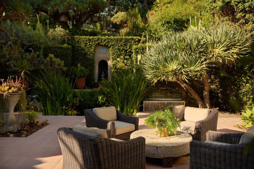 Beyond the interiors, the estate’s terraced grounds may be its most compelling feature. Set across a lush hillside, the outdoor spaces unfold gradually along winding stone paths, revealing a series of secluded lounges and gathering areas.