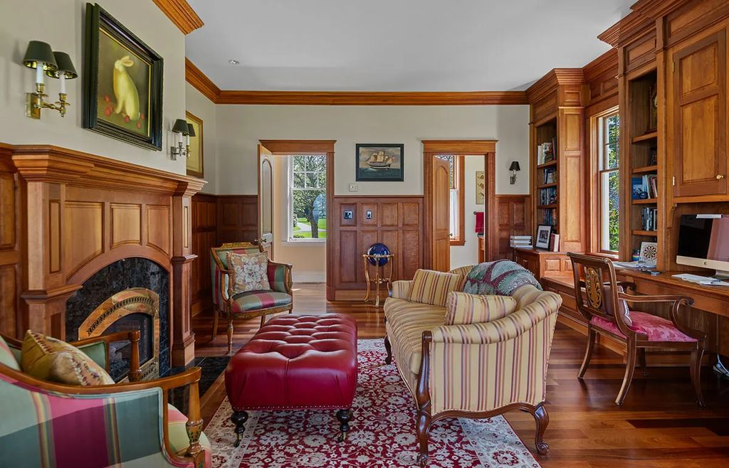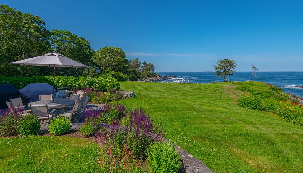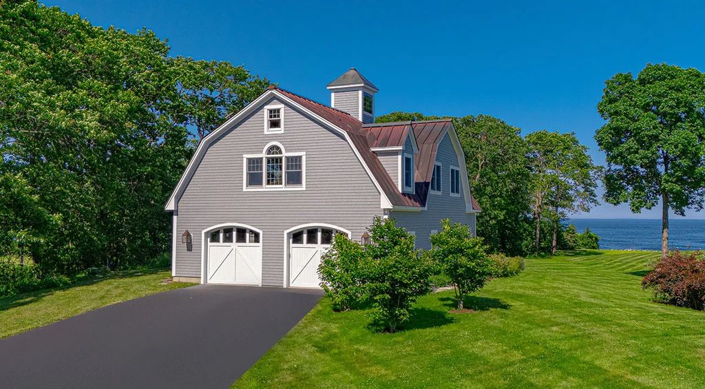 Located on Zeb Cove Road, the estate offers unmatched seclusion. The grounds feature sweeping lawns, vegetable gardens, berry bushes, a private pond, and two sheltered coves. The property includes a 7,600-square-foot main residence and a detached 2,000-square-foot carriage house built in 2002. Together, they create a private compound with direct access to the Atlantic.