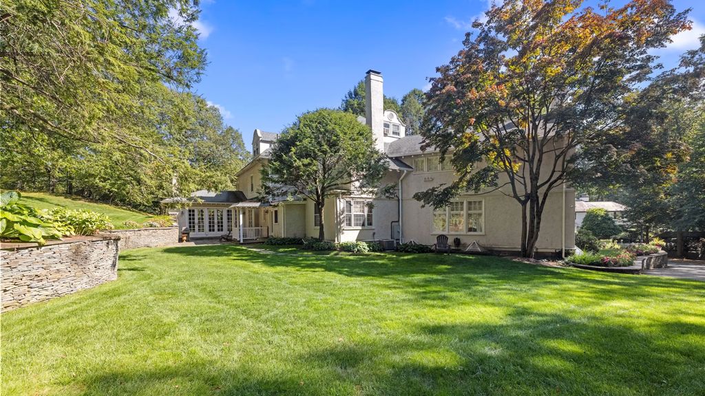Throughout the property, seven fireplaces add warmth and character, while multiple terraces and courtyards extend the living experience outdoors. The landscaped grounds, with their layered garden beds and mature plantings, create a private retreat that feels worlds away from the nearby city.