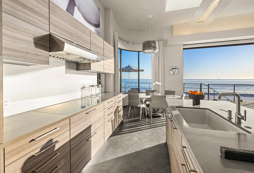What makes the Bryan Cranston Former Beach House so captivating is its relationship with its surroundings. Outdoor living is seamlessly integrated through multiple patios and an expansive rear deck, which steps directly onto the sand. From sunrise reflections to sunset vistas, the property ensures the Pacific Ocean is ever-present.