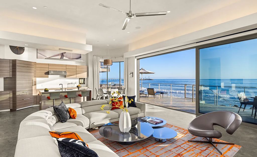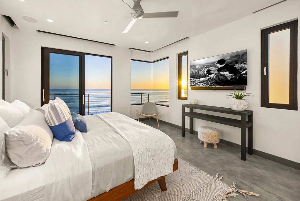 Beyond its technical credentials, the property embodies a seamless blend of form and function. The architectural design maximizes natural light through expansive walls of glass, while also framing uninterrupted views of the Pacific Ocean. The result is a coastal dwelling that feels both strikingly modern and deeply connected to its environment.