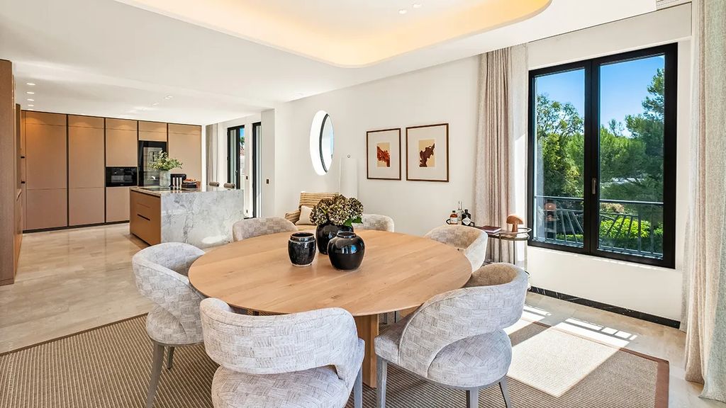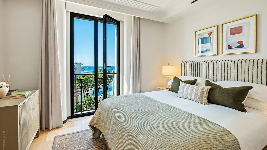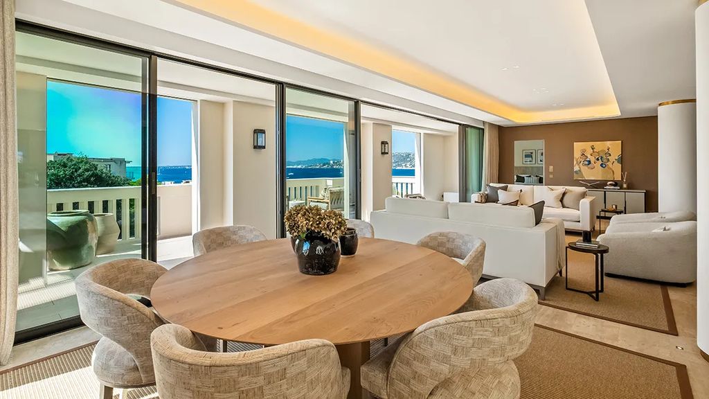 Residents of the former Le Provençal hotel enjoy exclusive access to a suite of amenities that echo the property’s historic prestige. These include Art Deco-inspired communal spaces, a private cinema, health spa, restaurant, retail boutiques, and six acres of landscaped gardens. The 98-foot swimming pool provides a tranquil retreat just steps from Hôtel Belles Rives’s private beach club, while terraces overlooking the Mediterranean allow for sunset viewing and alfresco dining.
