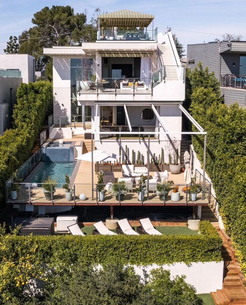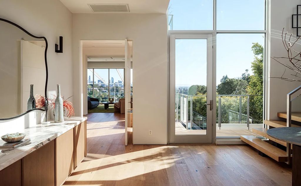 Situated on a tranquil cul-de-sac overlooking the Silver Lake Reservoir, this three-bedroom, four-bath residence epitomizes California’s contemporary hillside architecture. Completed in 2018, the Christina Ricci House LA spans roughly 3,400 square feet of refined living space across two open levels. Its sleek design is enhanced by smart-home automation, a rooftop deck, and walls of glass framing cinematic views from Downtown Los Angeles to the distant San Gabriel Mountains.