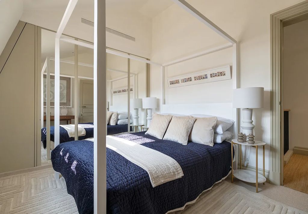 The residence occupies the upper levels of a grand stucco-fronted townhouse in Belgravia, one of London’s most exclusive enclaves, known for its elegant garden squares and discreet luxury. The penthouse stretches across multiple levels, crowned by an open-air rooftop garden that looks over central London’s rooftops and distant spires. The space feels curated rather than staged, reflecting the sensibilities of someone who valued beauty, comfort, and light.