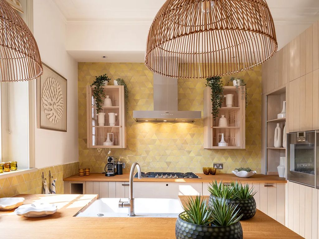 Spread across two floors, the 3,000-square-foot residence was designed to balance grandeur with comfort. McVie worked closely with U.K. interior designer Simon Buhl Davis to enhance the home’s classic features while introducing modern touches. The double reception room, anchored by a marble fireplace, features nine-foot ceilings and large sash windows that flood the interiors with natural light.