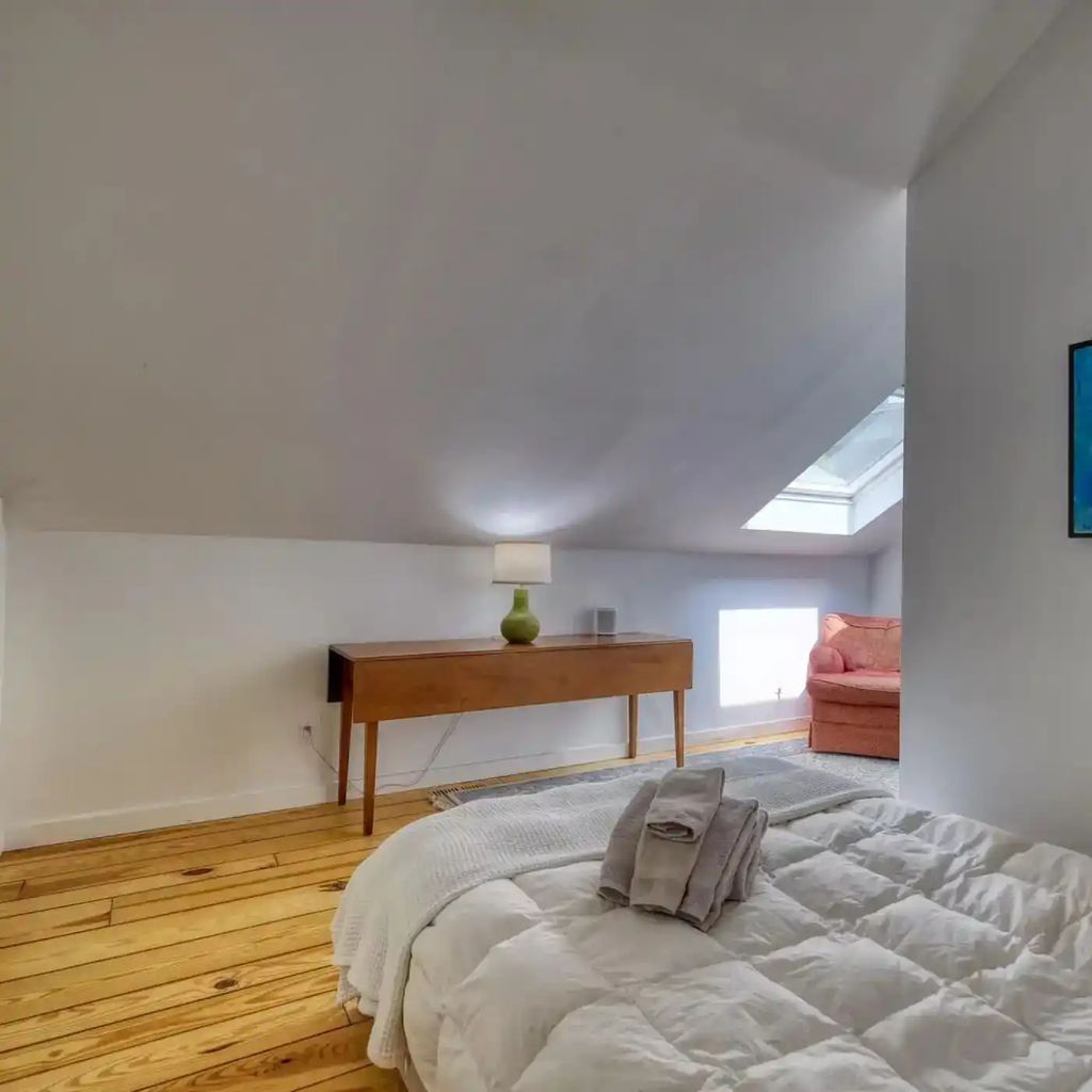The en suite bathroom is classic in its details: a clawfoot soaking tub, polished fixtures, and custom tilework that speaks to timeless design. This suite is not just a place to sleep—it’s a sanctuary of thought and privacy.