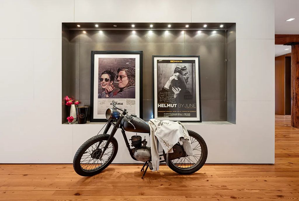 The primary suite, quietly tucked away behind sliding doors, boasts an oversized walk-in closet and a spa-inspired marble bathroom with a soaking tub and glass-enclosed shower. Throughout the home, the design exudes calm sophistication with subtle nods to Love’s musical background—vintage concert posters, handwritten lyrics, and curated art that blend effortlessly with the loft’s architectural structure.
