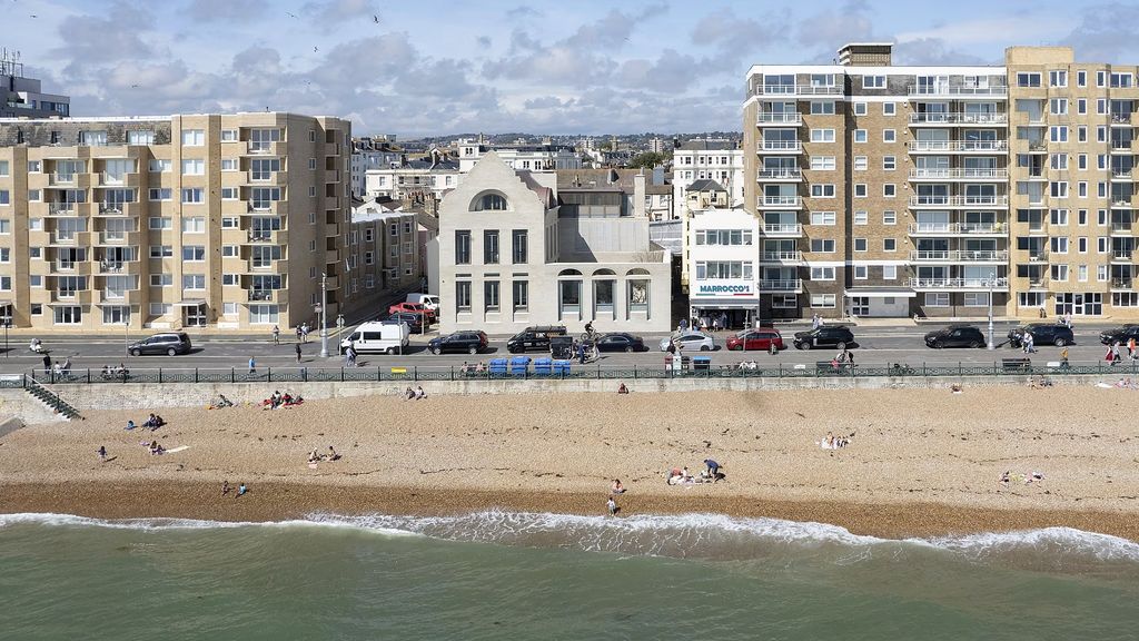 The nearly 8,000-square-foot residence sits directly along King’s Esplanade, offering uninterrupted views of the English Channel and immediate access to the beach—an increasingly rare combination on England’s southern coast.