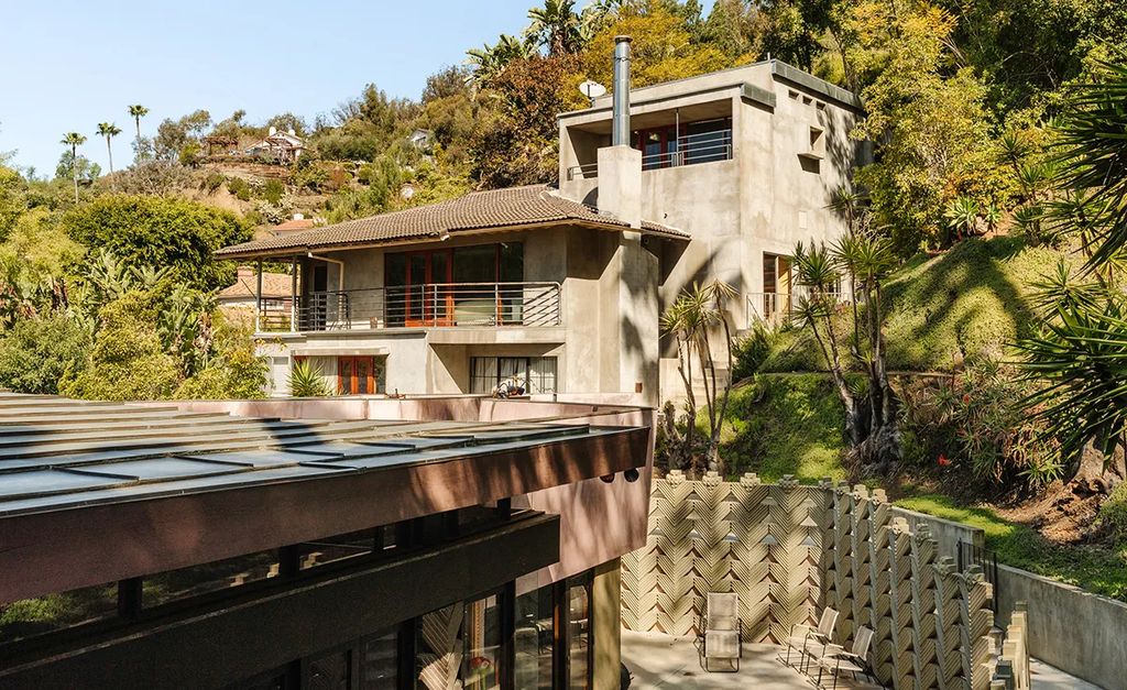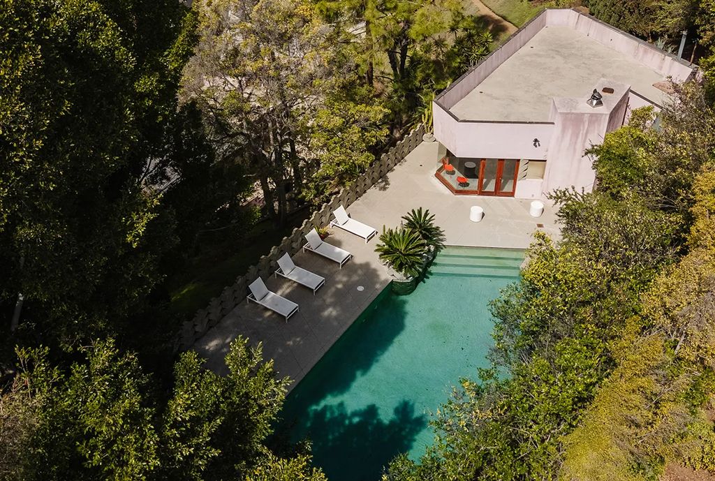 Beyond its architectural and artistic cachet, the estate delivers a quintessential Los Angeles lifestyle. Expansive patios and terraced gardens provide multiple outdoor living areas, while the hillside pool and pool house offer resort-style relaxation. The multi-building layout accommodates both intimate family life and large-scale entertaining, making it ideal for collectors, creatives, or anyone seeking a one-of-a-kind retreat.