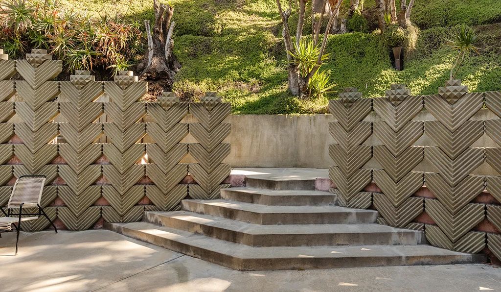 Architecture enthusiasts will appreciate how the compound unites midcentury ideals with modern functionality. The clean cement exterior of the main residence features chevron patterns that catch the Southern California sun, while the interiors maintain a harmony of open-plan living and intimate spaces. Lloyd Wright’s legacy is evident in every angle, a reminder of the enduring relevance of midcentury design in contemporary luxury real estate.
