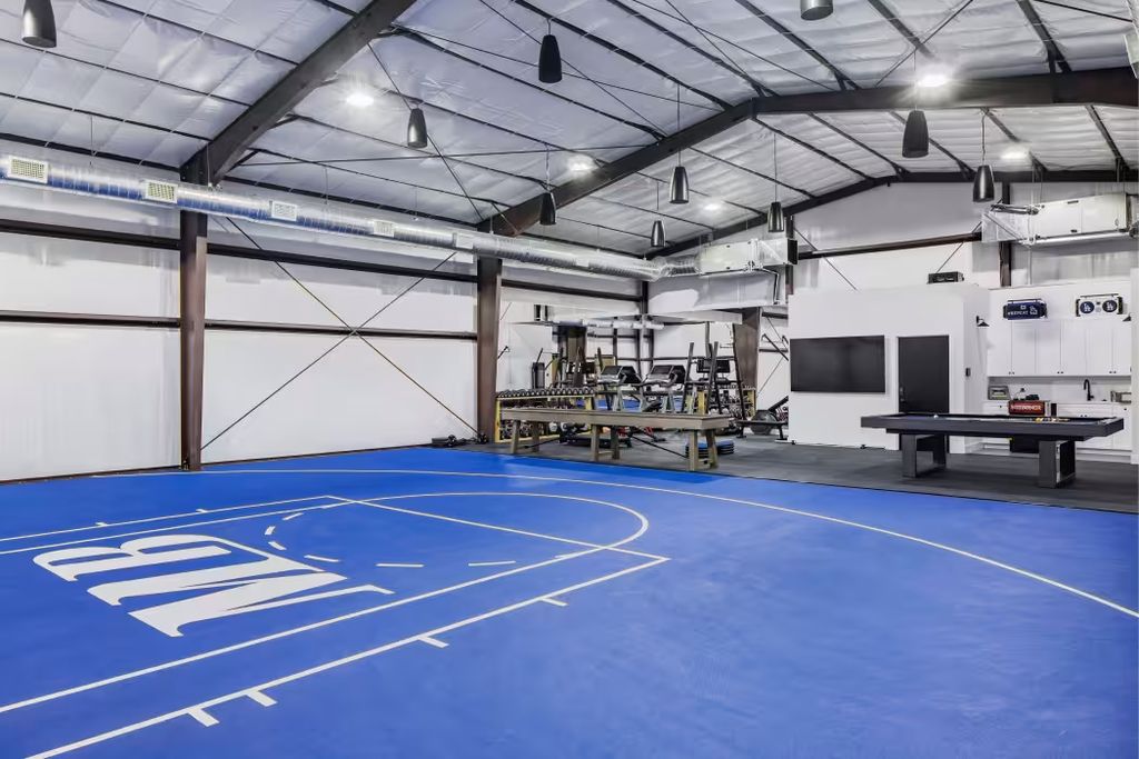 While the home’s interior appointments are impressive, its most distinctive feature lies in the backyard: a climate-controlled indoor gym complete with a half-court basketball court. Finished in blue with Betts’s initials, “MB,” painted at center court, the space also accommodates weight racks and workout equipment, making it a standout amenity even among luxury listings.
