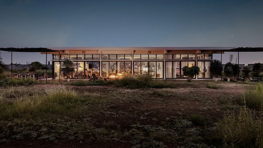 Set against uninterrupted views of Haystack Mountain and the Davis Mountains, the home spans 2,304 square feet of meticulously composed interiors. Timber, steel, and glass combine to form a structure that is both minimal and warm, with two-foot clerestory windows giving the illusion that the roof floats above the desert floor.