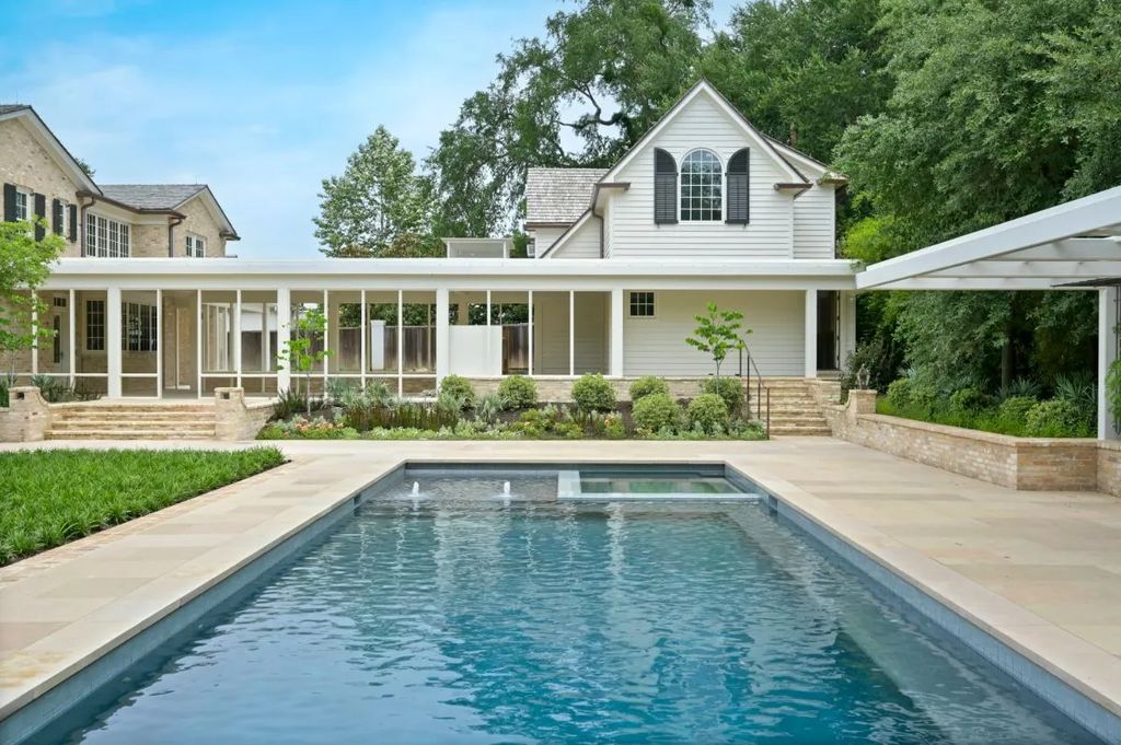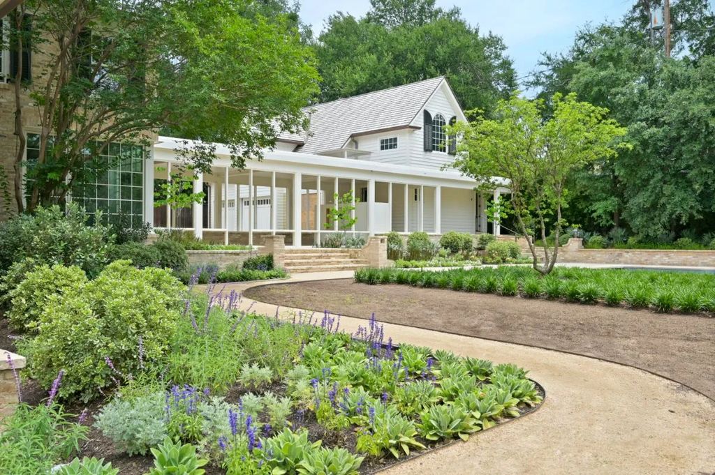 True to the Texas spirit of grandeur, the estate includes more than just the primary residence. A garage topped with a screening room and entertaining lounge provides additional leisure space, while a fully appointed two-bedroom guesthouse ensures visitors enjoy privacy and comfort. The grounds themselves rival any luxury resort. Expansive lawns, water features, and carefully curated gardens create a feeling of rural serenity, even though the property is located only minutes from downtown Austin. “Every corner of the garden invites a sense of peace,” landscape architect Thomas Kilpatrick shared with californialuxuryhouses, noting how the combination of native plants and formal pathways makes the estate feel like “a private arboretum in the heart of the city.”