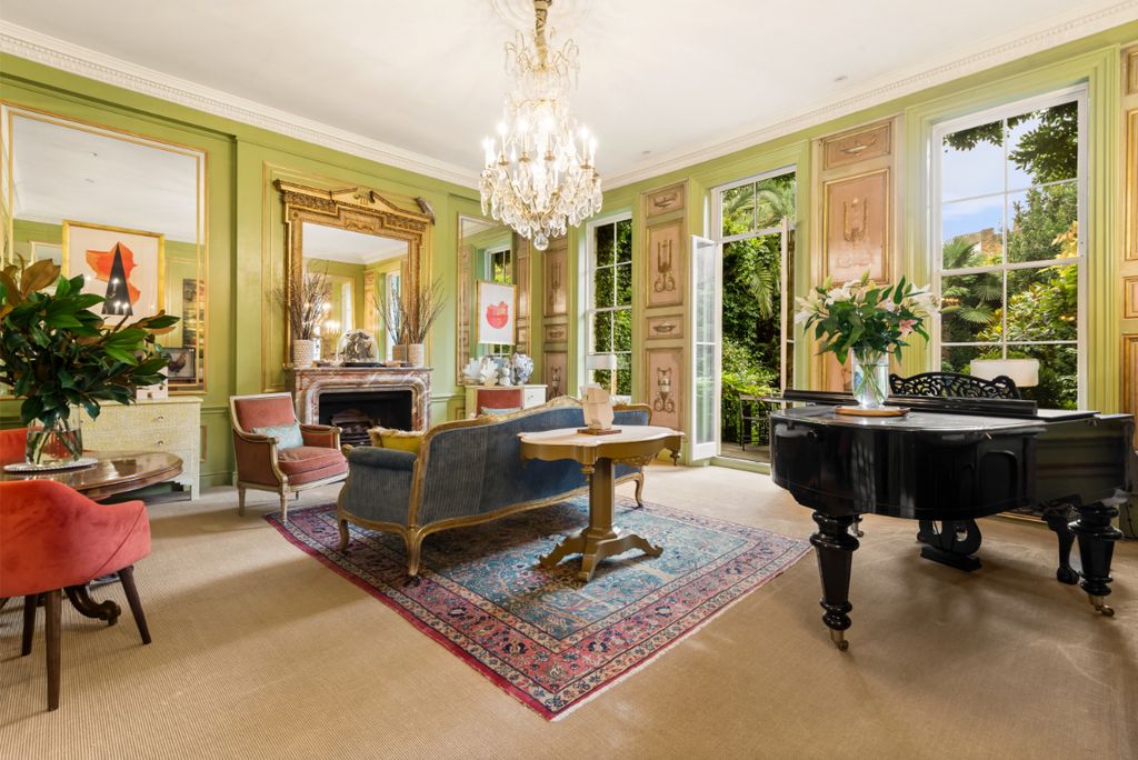 When the couple first stepped into the apartment in 2017, it wasn’t the bedrooms—or even the private garden—that captured their hearts. It was the murals. Hidden within the grand reception room were hand-painted palazzo scenes framed by ornate paneling, a theatrical setting that spoke instantly to their creative sensibilities. Having just relocated from Los Angeles, they were drawn to the apartment’s generous proportions and its untapped potential below ground and beyond the garden doors.