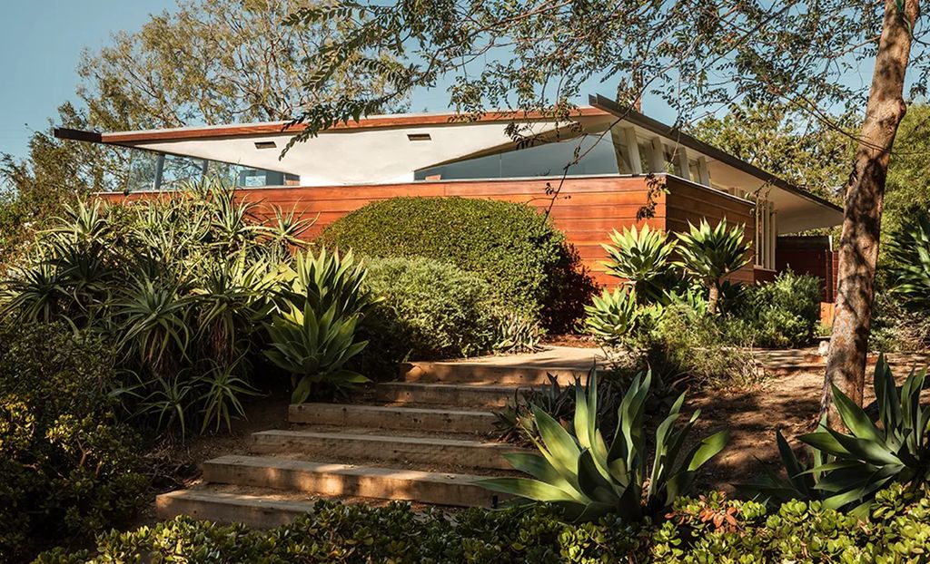 The modest yet iconic John Lautner residence at 1430 Avon Terrace—meticulously restored by fashion designer Trina Turk and her late husband, Jonathan Skow—has quietly reappeared on the Los Angeles market with an asking price just under $2.4 million. Built in 1948 and recognized for its butterfly roof and redwood details, the property at 1430 Avon Terrace represents an early and important chapter in Lautner’s post-apprenticeship work, and the recent restoration has reestablished the home as an authentic example of Southern California modernism.