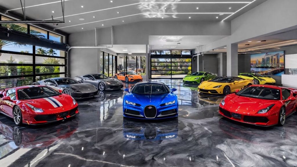 A dedicated, air-conditioned 15-car showroom—designed with double-height ceilings and space for vehicle lifts—functions less like a garage and more like a private gallery. A separate two-car garage accommodates daily drivers, preserving the showroom as a curated display environment.