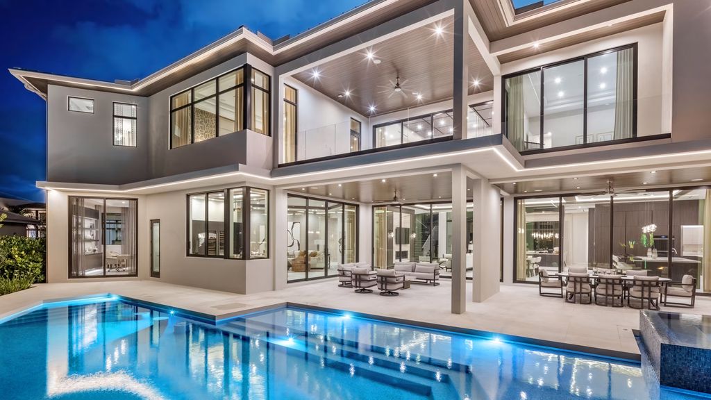 Outdoor amenities further elevate the lifestyle offering, including a heated pool and spa, expansive terraces, and a summer kitchen designed for year-round entertaining under the Florida sun.