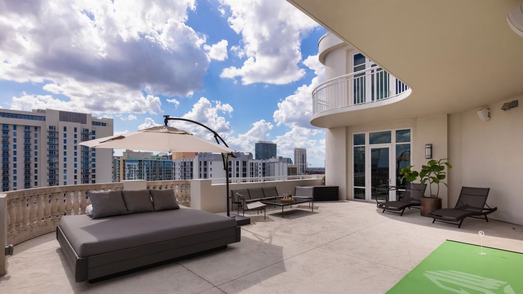 One of the penthouse’s defining features is its wraparound terrace, which extends the living space outdoors and offers uninterrupted views of Orlando’s skyline. The terrace provides ample room for lounging, dining, and entertaining—an increasingly sought-after feature in luxury urban residences.