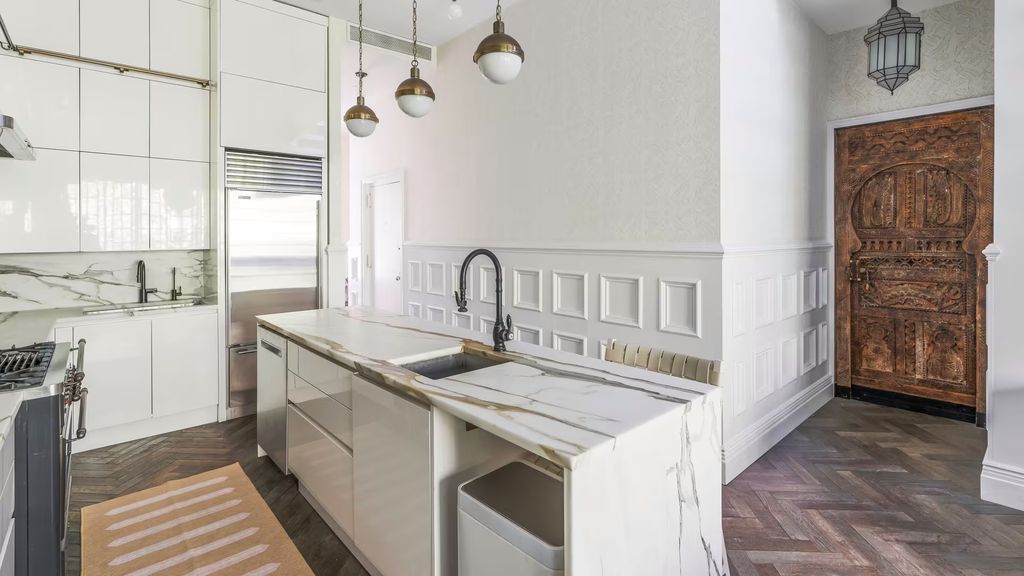 The duplex, represented by Smitha Ramchandani and Christopher Stokes Moseley of Christie’s International Real Estate, is among the very few merged units within this intimate row of landmarked townhouses. It stands not merely as a celebrity-owned property, but as a designer’s living portfolio—an expression of craftsmanship that is increasingly uncommon in an era dominated by new-build minimalism.