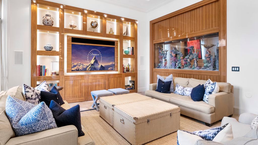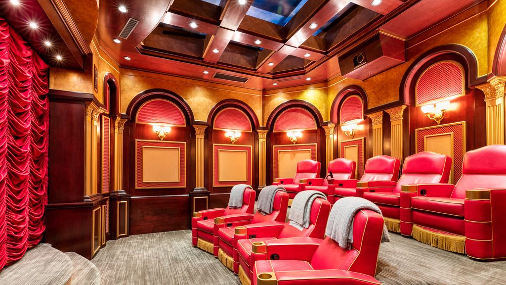 Beyond its primary living spaces, the residence incorporates a suite of entertainment-focused amenities that cater to a lifestyle of hosting and leisure. A dedicated game room offers flexibility for recreation, while a private home theater, complete with a popcorn machine and candy station, reflects a growing trend among luxury homeowners to replicate boutique cinema experiences at home.