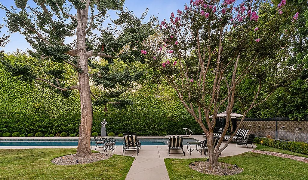Unlike many Los Angeles estates that have undergone modernistic erasures, the Holly Madison Former Home LA estate remains a celebration of classical details. The approach is anchored by a hedge-lined pathway, which buffers the residence from the street and offers a sense of quiet arrival rare within the city’s dynamic urban fabric. The portico is adorned with black-and-white tile floors, a motif reminiscent of early 20th-century West Coast formalism.