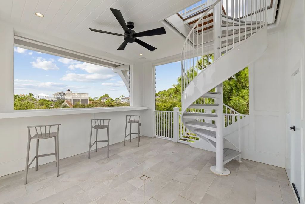 The home’s location, just steps from the community boardwalk, ensures effortless access to white sand beaches and turquoise waters. The careful positioning on the lot maximizes privacy without sacrificing connection to the natural beauty of the Emerald Coast.