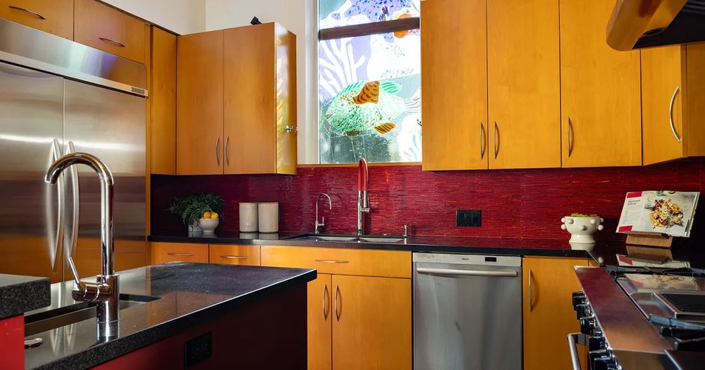 The kitchen is both functional and sophisticated, equipped with a butcher-block island, open shelving, stainless steel appliances, and a cozy breakfast banquette overlooking the lush landscape. The main-level primary suite offers a fireplace, built-in cabinetry, a walk-in closet, and a luxurious cobalt-blue-tiled soaking tub, creating a private retreat. Additional en suite bedrooms on the first floor and two more upstairs ensure comfortable accommodations for family and guests. The listing agent shared, “The interiors were designed to feel warm and inviting while showcasing the home’s luxurious details and classic Cape Cod charm.”