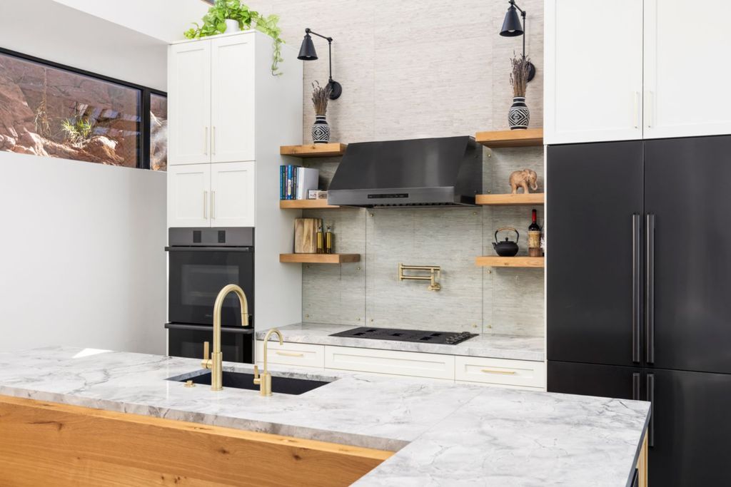 californialuxuryhouses reviewed listing materials indicating the kitchen was designed not only for daily use but also for entertaining against the dramatic mountain backdrop.