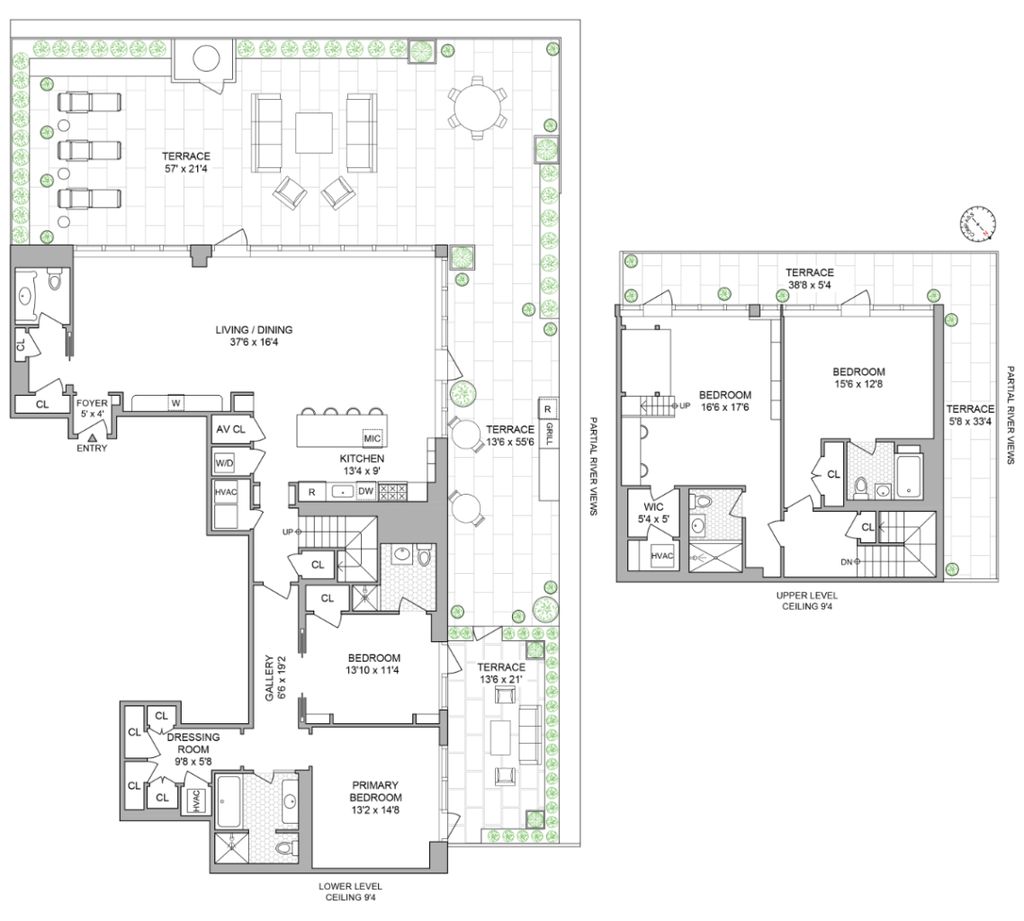 Residents of the boutique 75-unit building enjoy upscale amenities, including a double-height lobby, 24-hour concierge, fitness and yoga studios, a resident lounge, a landscaped courtyard, and a rooftop terrace.