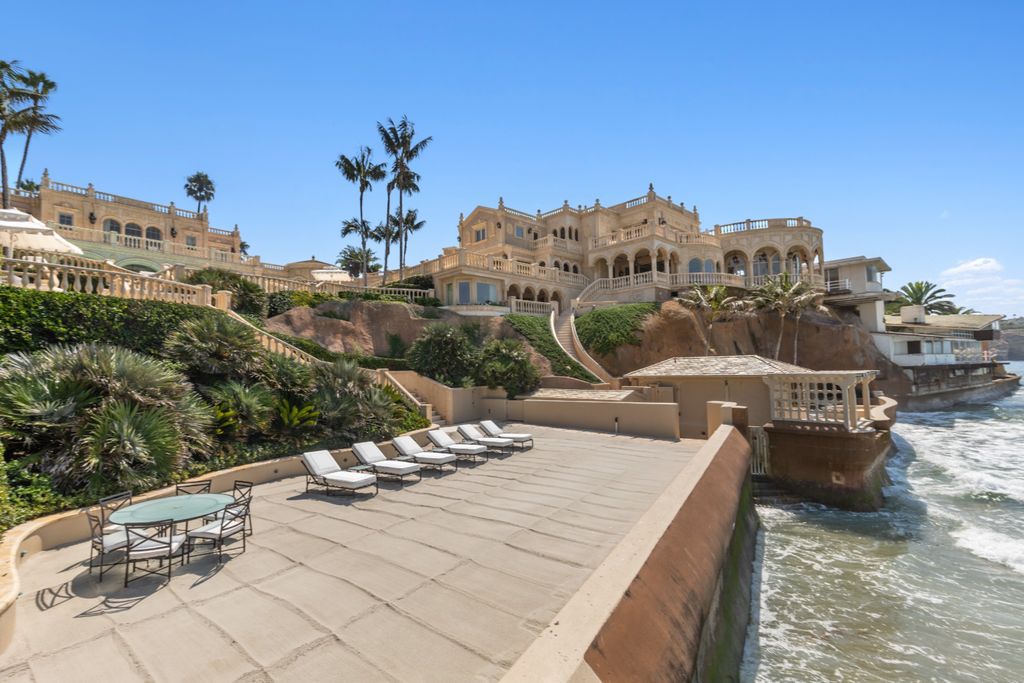 The La Jolla Sand Castle Estate for sale spans approximately 12,981 square feet across nearly one acre of prime beachfront land, offering 10 bedrooms and 11 full bathrooms, along with three powder rooms. What truly distinguishes this estate, however, is its grandfathered proximity to the shoreline, complete with a private beach and reinforced seawall—features virtually impossible to replicate today along the California coast.