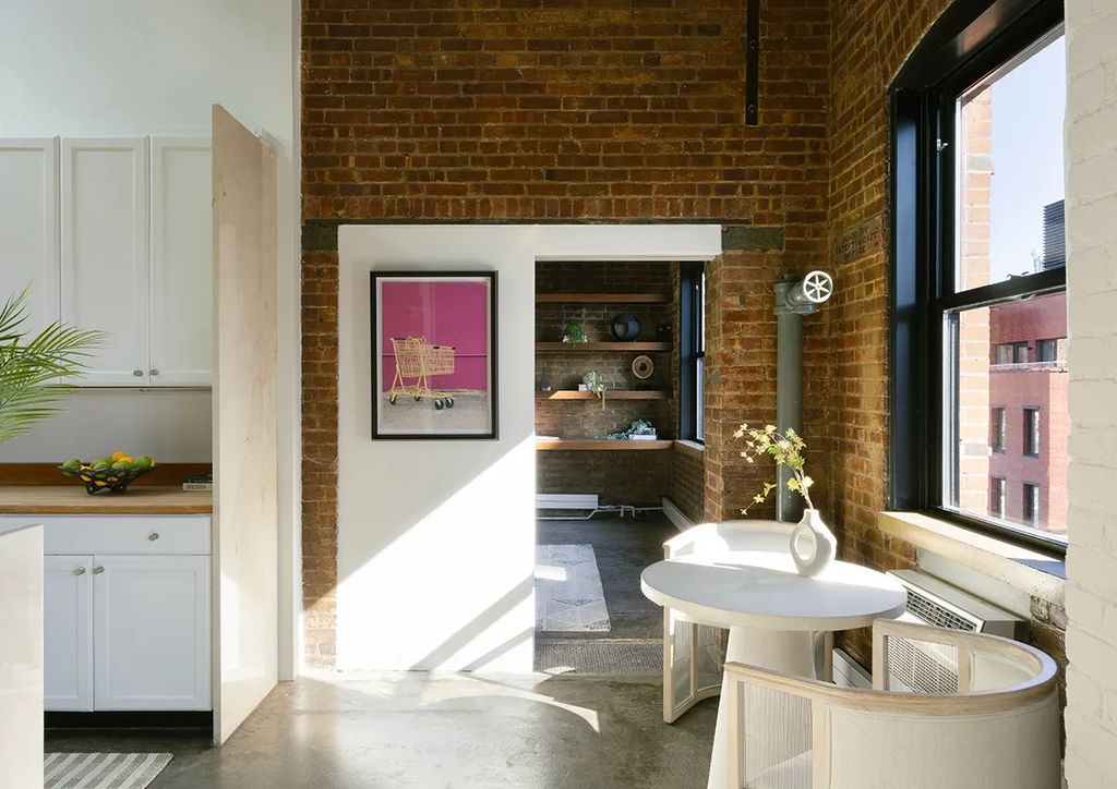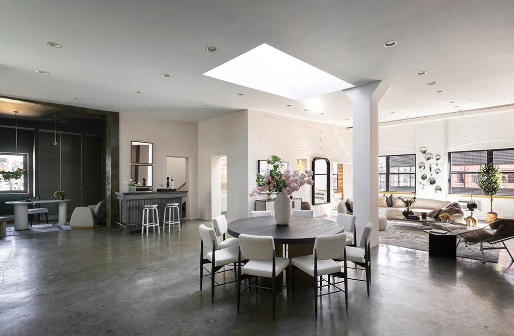 Spanning approximately 4,000 square feet, the penthouse perfectly balances the raw character of a historic loft with the sophistication of modern living. Skylights and oversized windows bathe the interiors in natural light, while exposed brick walls, polished concrete floors, and soaring ceilings create a distinctly New York atmosphere. Every corner of the home celebrates craftsmanship and subtle luxury, designed to feel both authentic and timeless.