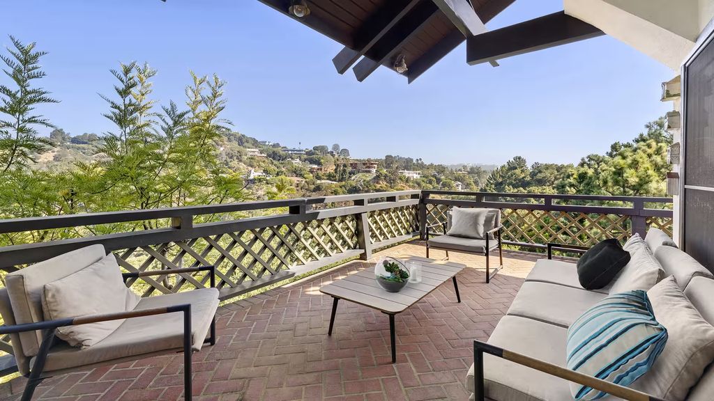 The secondary parcel, which the current owners have used as an extension of the property’s outdoor space, is buildable, according to the listing. While parts of the lot are hillside, several sections are relatively flat—an unusual feature in this part of Los Angeles.