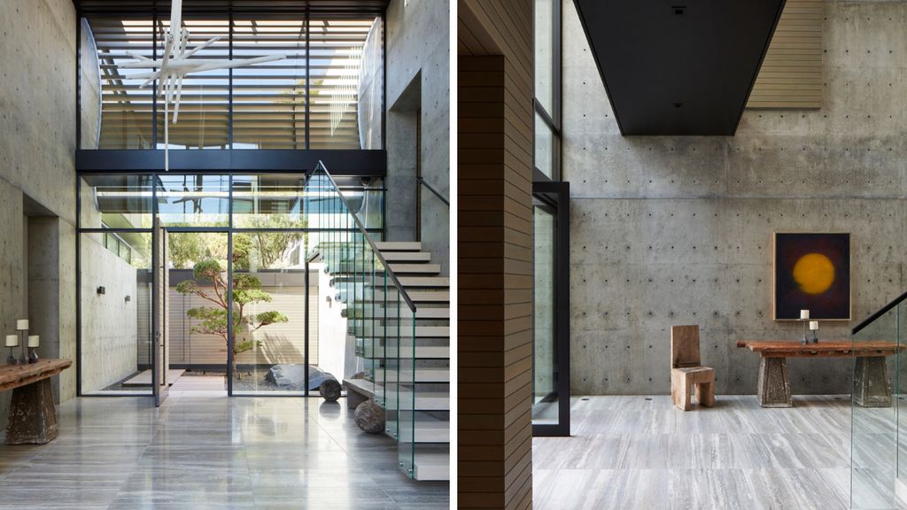 KAA Design, known for projects such as Drake’s Beverly Hills compound, conceived the 8,600-square-foot home as a seamless extension of the natural environment. Concrete walls and black metal window frames provide a sculptural exterior, while expansive walls of glass erase the boundary between indoor and outdoor spaces. Natural oak millwork, polished concrete floors, and strategically placed skylights create a tranquil atmosphere filled with coastal light. “The brief from Ms. Sharapova was to craft a private refuge where architecture and landscape merge,” a representative from KAA Design explained in remarks to californialuxuryhouses, highlighting how every detail—from structural steel to custom lighting—serves that vision.