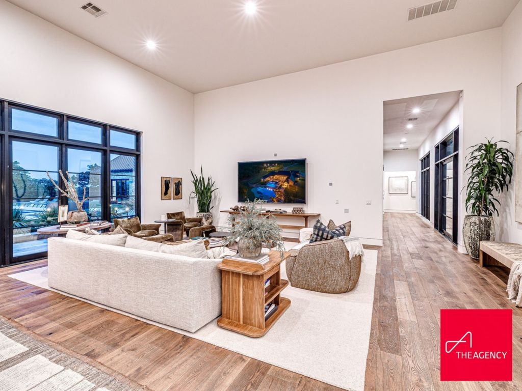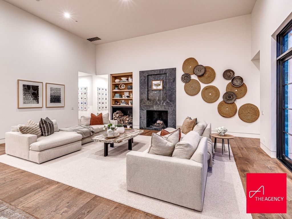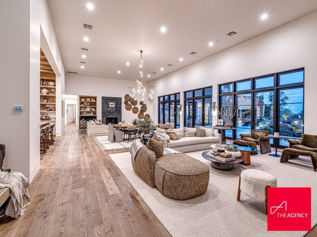Inside, the residence opens into a grand yet inviting great room, where multiple living zones are thoughtfully arranged within an open-concept layout. Floor-to-ceiling glass doors blur the boundary between indoor and outdoor living, allowing natural light to flood the interiors throughout the day.