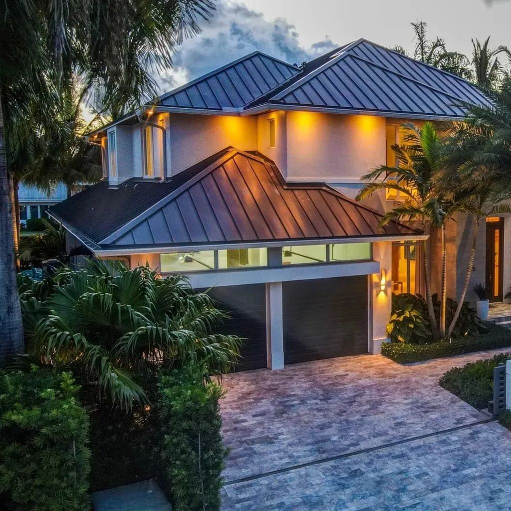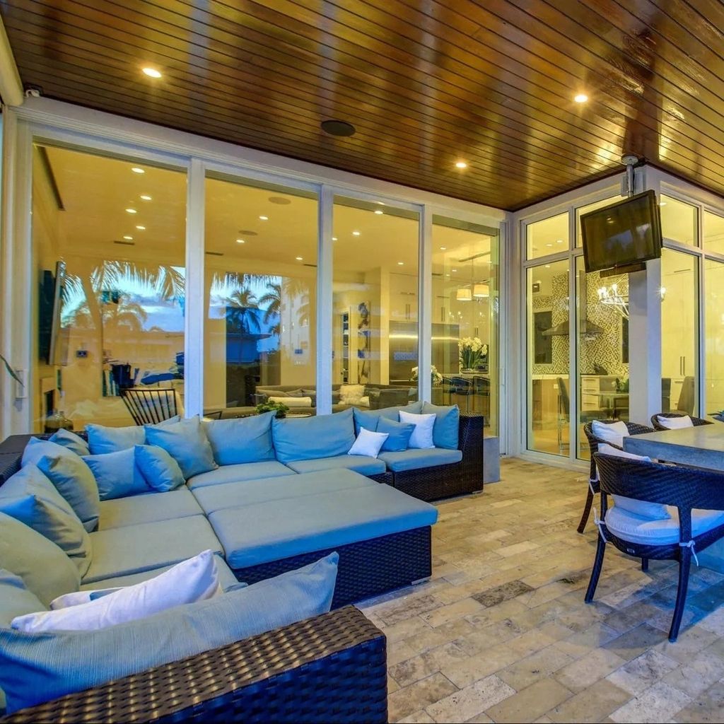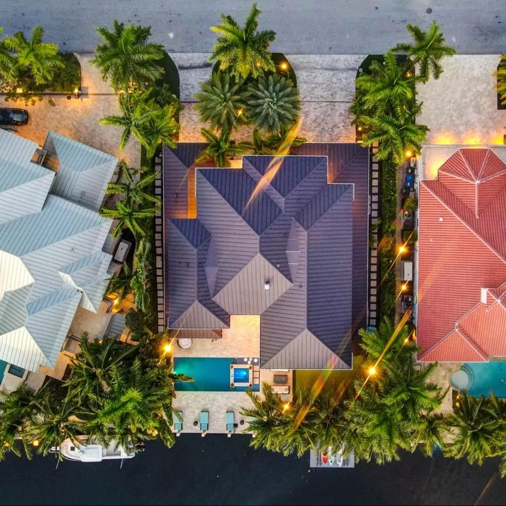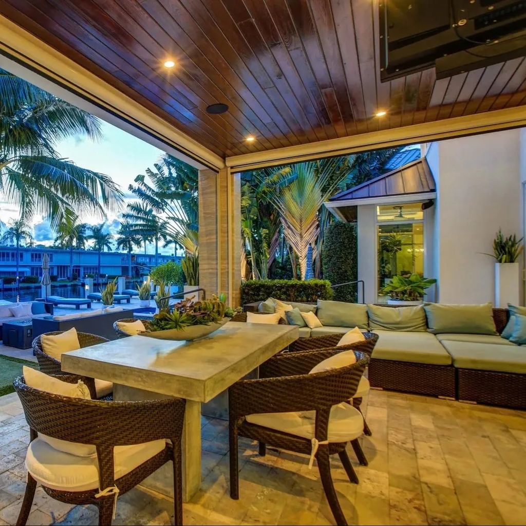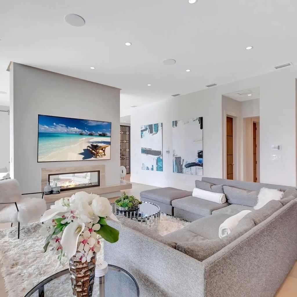 Located in one of South Florida’s most exclusive waterfront communities, this $6.7 million estate owned by Florida Panthers star Matthew Tkachuk captures coastal living at its finest. The exterior is clean and contemporary, with crisp white walls, glass-lined balconies, and lush tropical landscaping. The private dock extends into a tranquil canal, offering seamless access to the Intracoastal Waterway—ideal for both weekend boaters and serene sunset views. The resort-style backyard features a sleek infinity-edge pool, spa, and multiple lounging areas for outdoor entertaining.
