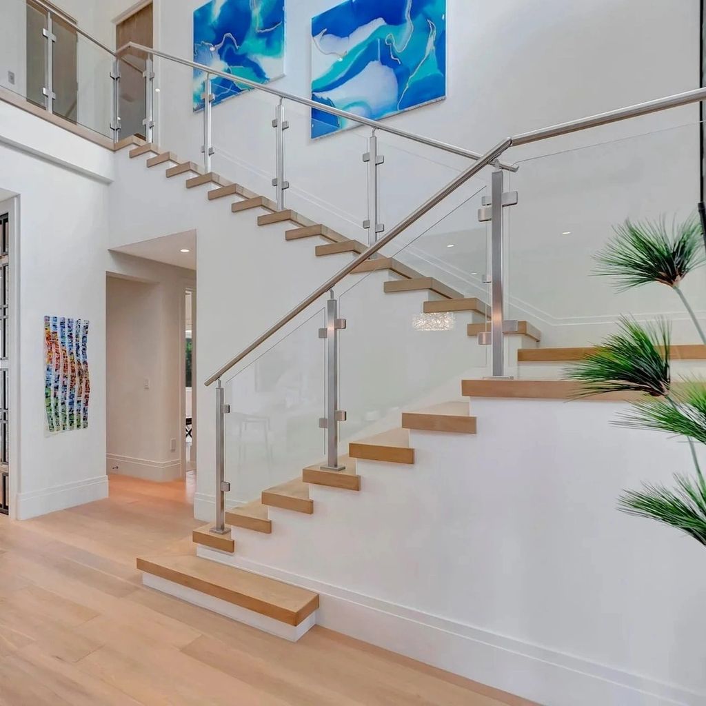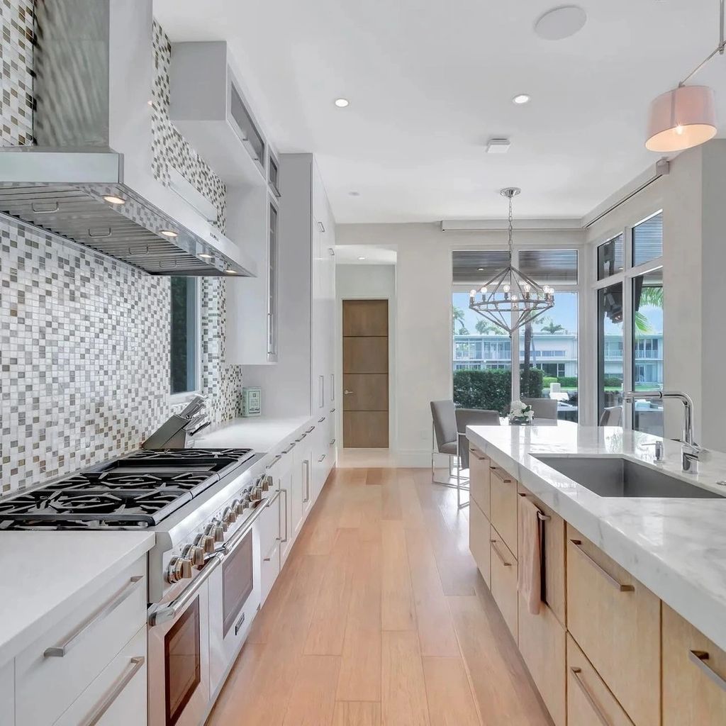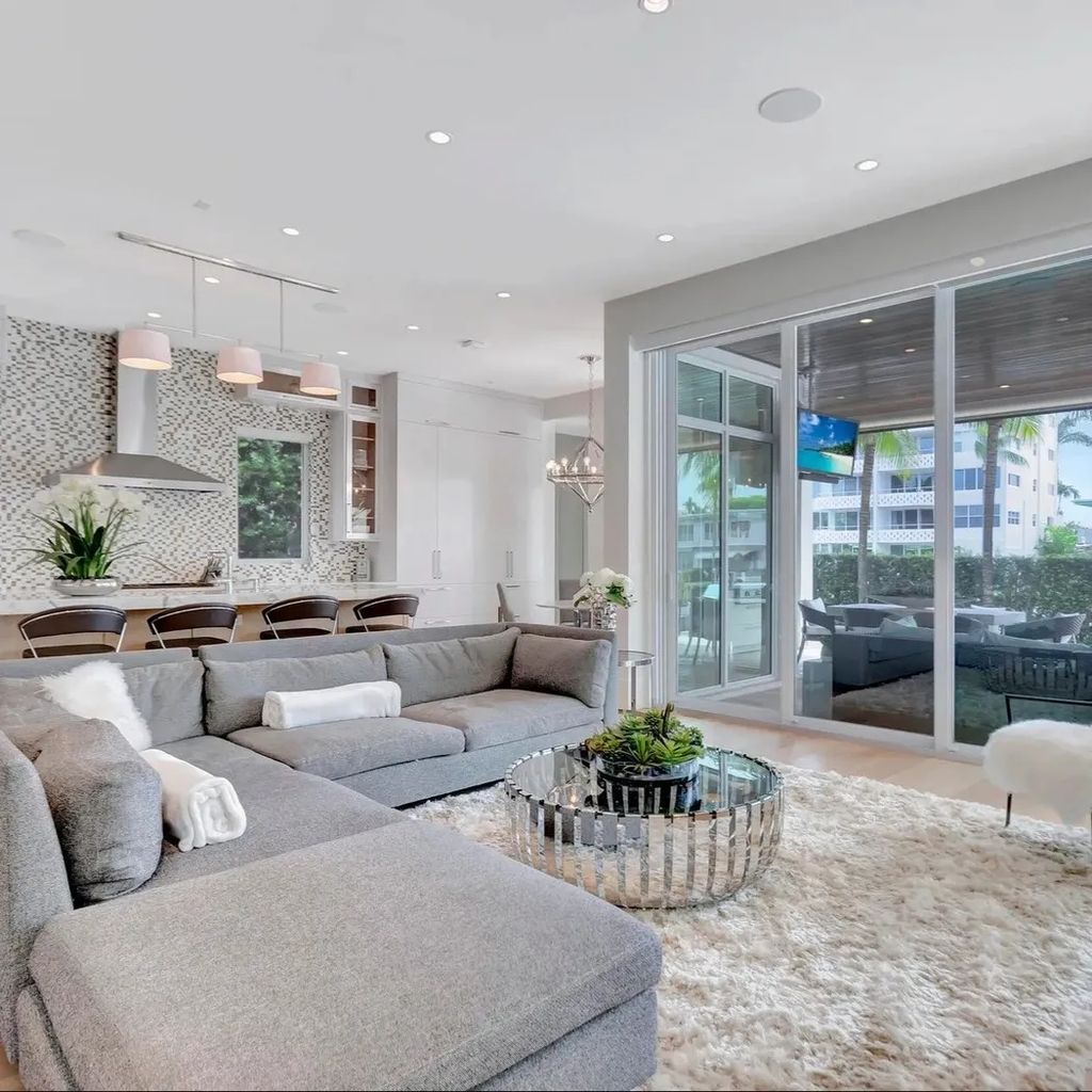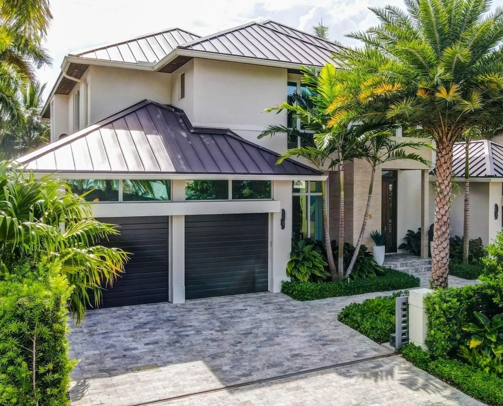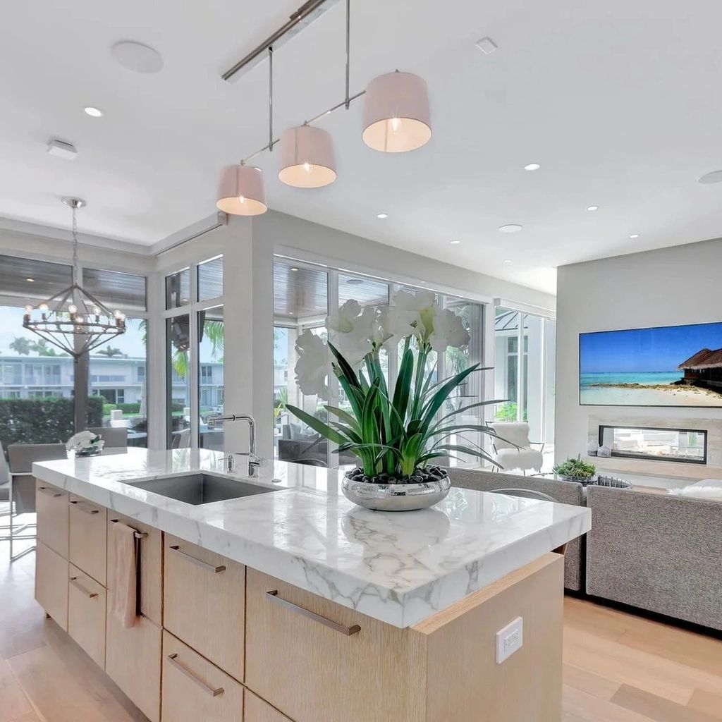 Located in one of South Florida’s most exclusive waterfront communities, this $6.7 million estate owned by Florida Panthers star Matthew Tkachuk captures coastal living at its finest. The exterior is clean and contemporary, with crisp white walls, glass-lined balconies, and lush tropical landscaping. The private dock extends into a tranquil canal, offering seamless access to the Intracoastal Waterway—ideal for both weekend boaters and serene sunset views. The resort-style backyard features a sleek infinity-edge pool, spa, and multiple lounging areas for outdoor entertaining.