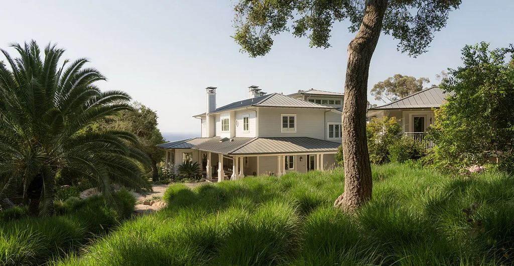 The outdoor areas are a highlight of the Montecito estate, reflecting the best of Southern California living. A long gated driveway lined with lush greenery ensures privacy, while the grounds feature gardens, a bubbling fountain, and multiple seating areas ideal for alfresco dining, entertaining, or quiet relaxation.