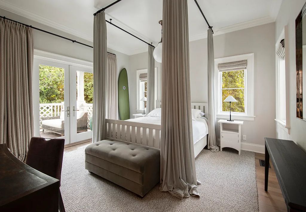 When asked about the property’s design, a Riskin Partners agent told californialuxuryhouses, “The outdoor spaces were envisioned as extensions of the indoor living areas. Meg wanted every vantage point to feel special, whether you’re in the garden, on the porch, or gazing out from the balcony.”
