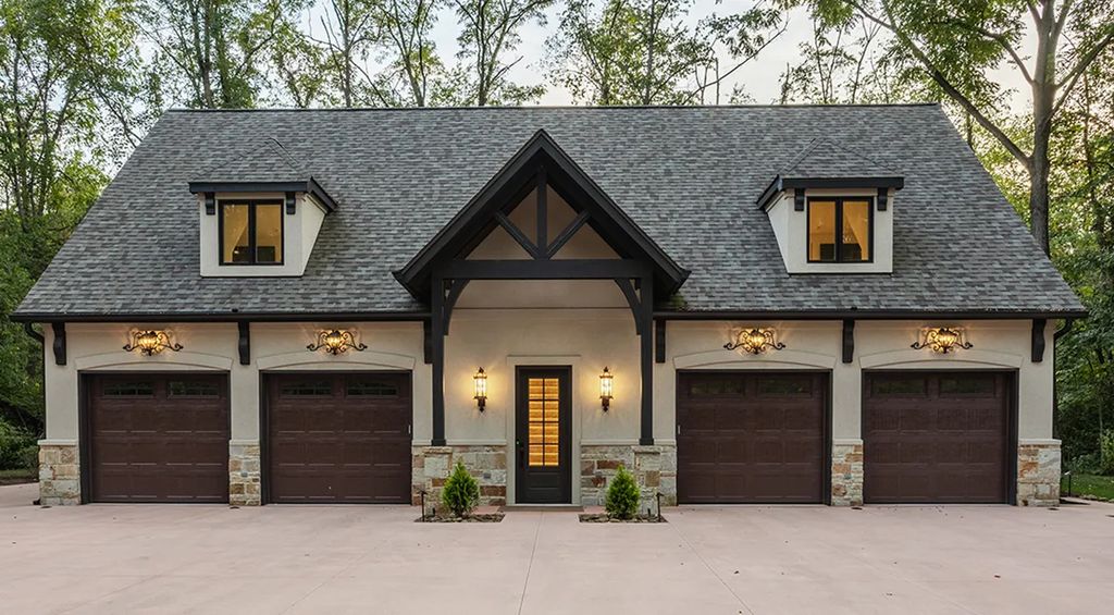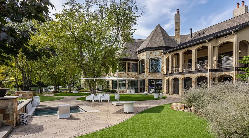Car enthusiasts will appreciate three climate-controlled garages totaling 5,500 square feet, accommodating over a dozen vehicles.