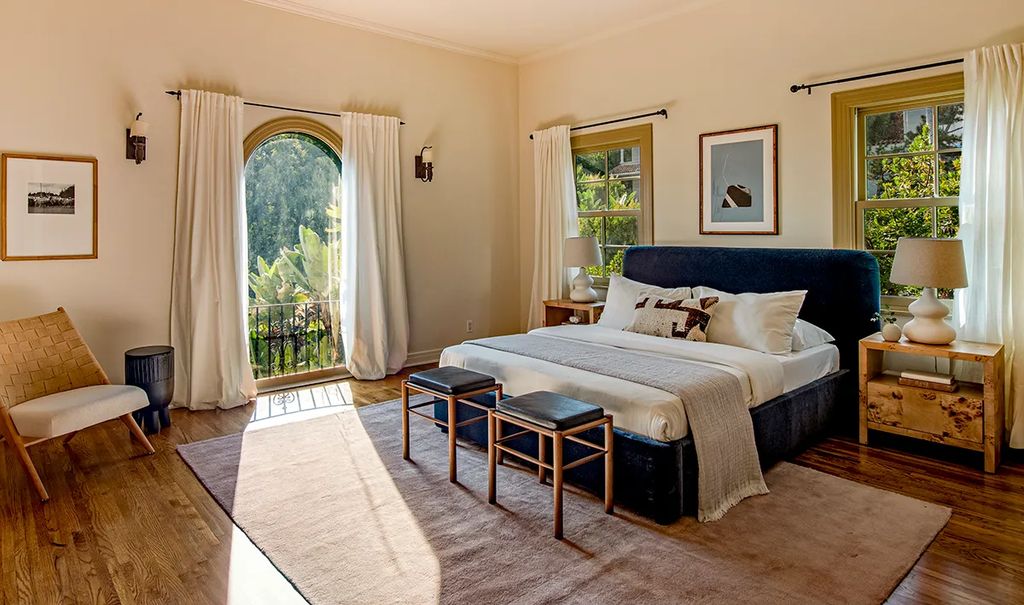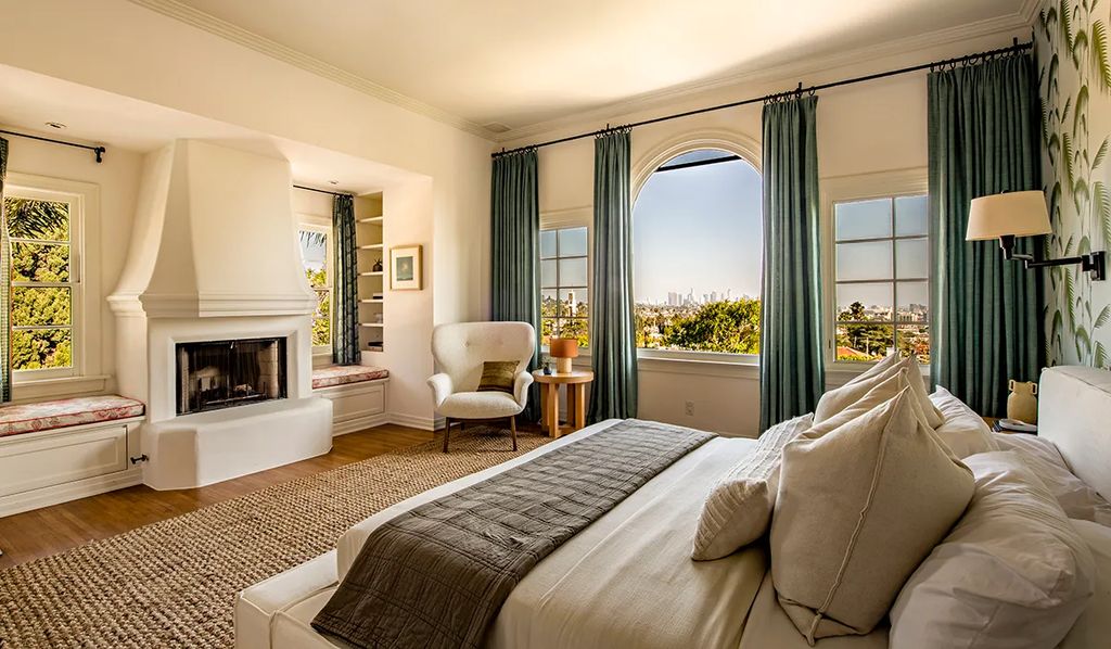 Upstairs, the primary suite commands sweeping views of downtown Los Angeles and the distant mountains. A private balcony invites tranquil mornings, while the spa-inspired bathroom showcases a freestanding soaking tub, dual vanities, and a glass-enclosed shower lined with imported stone. Three additional bedrooms provide flexible space for guests or creative studios, a feature highly prized in Los Feliz luxury real estate, where artists and professionals alike seek inspiring environments.