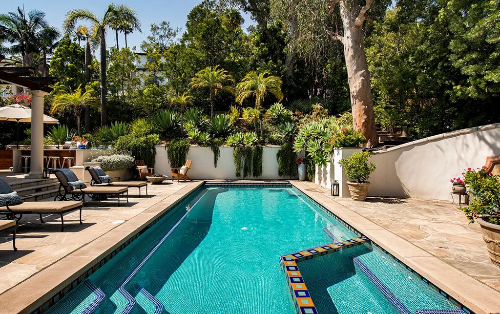 Los Feliz is celebrated for its lush landscapes and cinematic vistas, and this property leverages its hillside position to dramatic effect. The backyard extends the living area with an infinity-edge pool that seems to merge with the horizon. Multiple seating areas encourage relaxation beneath the California sun, while mature trees offer privacy without sacrificing views. At night, strategically placed lighting transforms the outdoor space into an ethereal retreat, perfect for entertaining or quiet contemplation.
