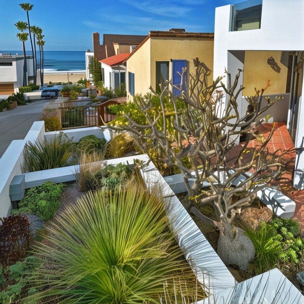 The rooftop deck is a standout feature, offering panoramic views over Manhattan Beach, perfect for evening entertaining or peaceful morning yoga. A built-in fireplace and outdoor kitchen area make the space as functional as it is beautiful. The lush backyard is equally impressive, designed with a minimalist approach and centered around connection with the coastal environment.