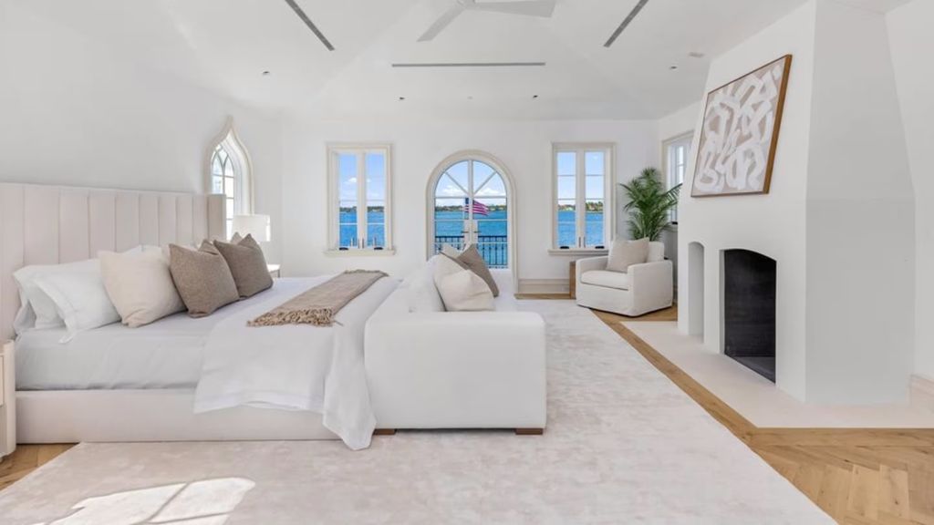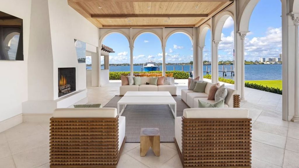 Upstairs, additional bedrooms provide accommodations for guests, while a dedicated movie theater opens onto a balcony overlooking the surrounding grounds. The finished lower level further enhances the home’s versatility, incorporating a meditation room that reflects the growing emphasis on wellness amenities in modern luxury homes.