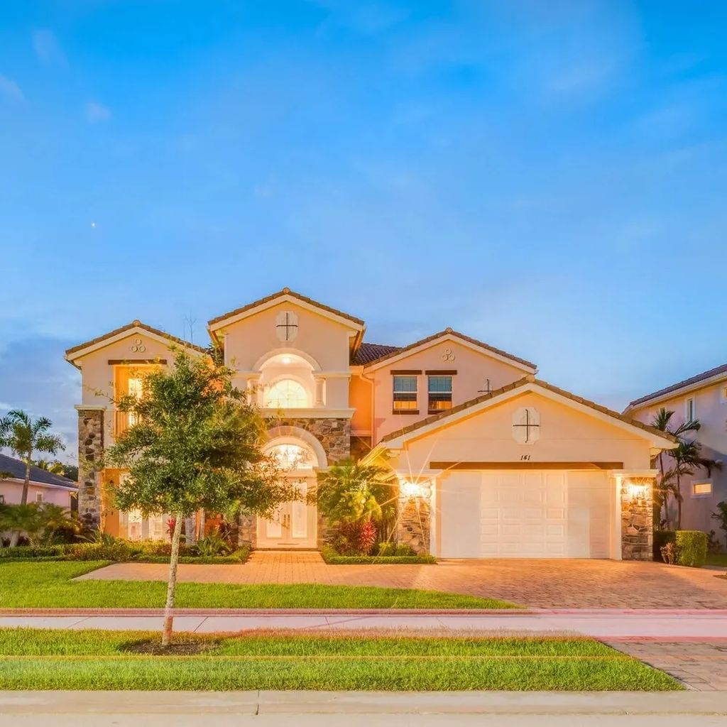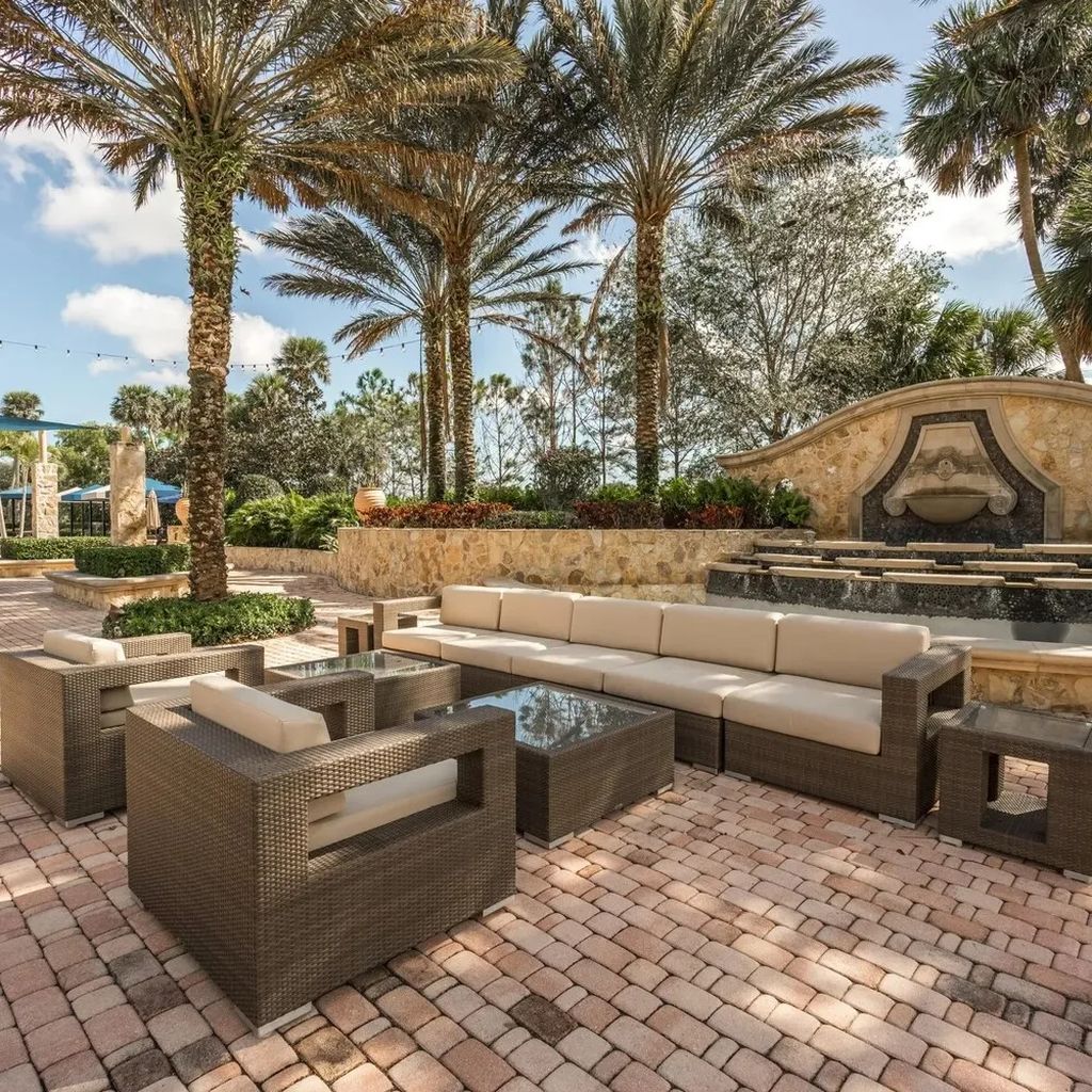 Set on a lush, manicured lot in a gated enclave, the exterior features tropical landscaping, tall palm trees, and a subtle yet elegant stucco façade. Though conveniently close to Tiger Woods’ estate—an arrangement allowing easy visits—the property feels secluded, with privacy hedges and mature greenery. Outdoor amenities include a resort-style pool, covered patio, and multi-zone seating areas—perfect for family gatherings and alfresco relaxation.